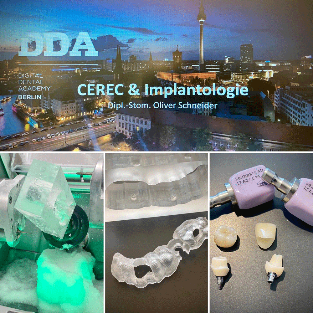 Der dritte Kursteil mit dem Themenbereich "Cerec & Implantologie" stand am Wochenende auf dem Lehrplan für das Curriculum Cerec. In Berlin ging es unter strenger Einhaltung aller Hygieneschutzmaßnahmen dieses Mal um die sog. "Guided Surgery" - sprich - die geführte oder navigierte Implantation mit Unterstützung von Cerec. Dabei wird im Sinne eines sog. Backward-Planning (Rückwärtsplanung) das spätere Ergebnis - z.B. eine implantatgetragene Krone exakt und individuell für die Patientensituation geplant und konstruiert. Im nächsten Schritt wird dann zur konstruierten Krone die Implantatposition geplant und festgelegt. Dies erfolgt alles am Computer. Erforderlich sind vorher eine dreidimensionale digitale Röntgenaufnahme des Kiefers sowie die digitale Erfassung (Scan) der Zähne. Diese beiden Daten ergeben zusammen die Planungsgrundlage für das spätere perfekte Ergebnis!